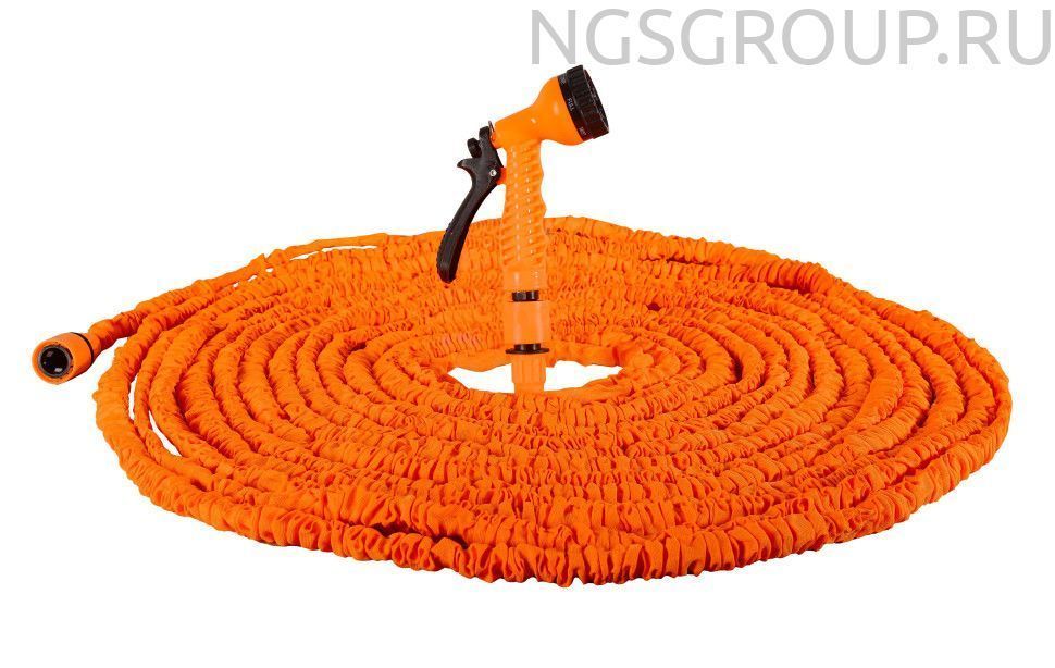 Набор для полива подходит для орошения дачных и садовых участков. Комплектуется пистолетом-распылителем с 7 режимами. Шланг из прочного латекса может сжиматься и растягиваться, что удобно при поливе и хранении.
